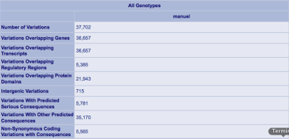 You may have read about the release of my raw personal exome data in a previous entry. Although users were not required to report back any finding derived from this data, my hope was that some of them would return with interesting results. The response to this call has been overwhelmingly positive and in less than a week Oxford Gene Technology (OGT) has kindly provided me with a report to facilitate the analysis of my personal exome. OGT’s donation has allowed the start of the “My Personal Exome Analysis” series in this blog. In Part I, I will be sharing some data and preliminary metrics gathered from OGT’s exome analysis services. I will continue to report further findings and insights as I keep exploring my personal exome at the deepest level that technology (and budget) currently allows.