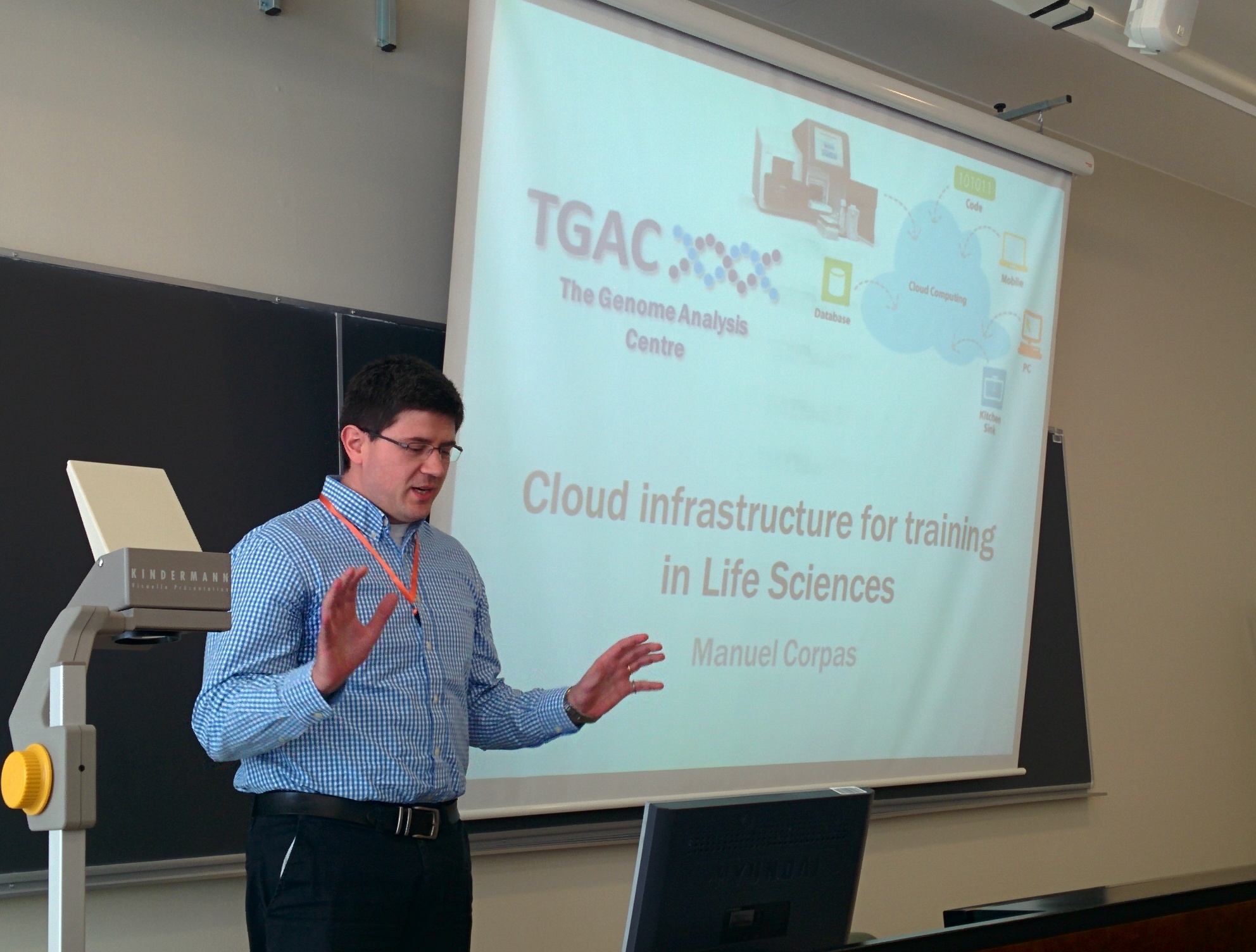 Today I am presenting at the European Grid Infrastructure meeting my presentation entitled “Bioinformatics Training in the Cloud“. This presentation is held in session 2 of “Going beyond grid to enable life science data analysis“. This presentation is available in the GOBLET training portal. In this talk I introduce the advantages and challenges of using cloud technologies for training in bioinformatics. I present experiences from brilliant bioinformaticians such as @BioMickWatson @pathogenomenick @CaroleAnneGoble @ctitusbrown and two examples of current implementations that promise to be successful. One of these examples is taken from a publication, recently published by @MVickySchneider et al on the NeCTAR cloud infrastructure.